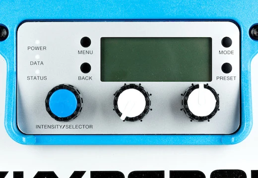 Simple, Intuitive Controls. The Skypanel boasts easy-to-use controls. The three on-board knobs to instantly adjust color temperature, green/magenta balance, light intensity, and hue and saturation. You can also remotely control all functions via DMX or LAN connections. The Skypanel is supported by a manual aluminum yoke.