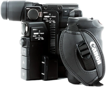 Robust Audio Options. The C200 includes two XLR audio inputs with +48V phantom power and a 3.5mm mic port. All of these inputs offer automatic and manual gain control. This camera records uncompressed audio in 16-bit PCM format at 48kHz.