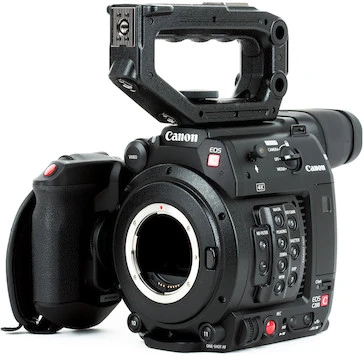 Ultra-High Resolution Electronic Viewfinder. The EOS C200’s built-in 0.46-inch, 1.23MP color EVF and 100% field of view coverage makes it easy to view footage and accurately judge its quality. You can adjust the EVF’s angle of view. You also get a removable four-inch touchscreen LCD viewfinder, a removable top handle, and a camera-control handgrip.