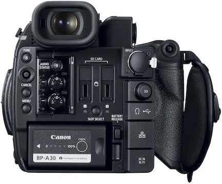Robust Audio Options. The C200 includes two XLR audio inputs with +48V phantom power and a 3.5mm mic port. All of these inputs offer automatic and manual gain control. This camera records uncompressed audio in 16-bit PCM format at 48kHz.