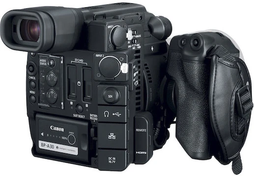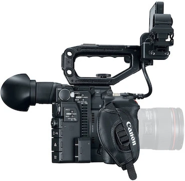 Ultra-High Resolution Electronic Viewfinder. The EOS C200 PL’s built-in 0.46-inch, 1.23MP color EVF and 100% field of view coverage makes it easy to view footage and accurately judge its quality. You can adjust the EVF’s angle of view. You also get a removable four-inch touchscreen LCD viewfinder, a removable top handle, and a camera-control handgrip.