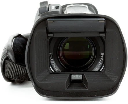 Image Stabilized Zoom Lens. The attached lens has a 20x zoom ratio with a 35mm equivalent zoom range of 30.6 to 612mm in 4K. Range is extended to around 640mm when shooting in 1080p or lower. The lens works in conjunction with the sensor for 5 axis of stabilization to ensure smooth handheld shooting.