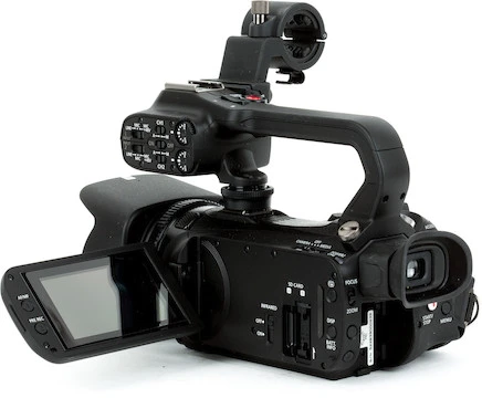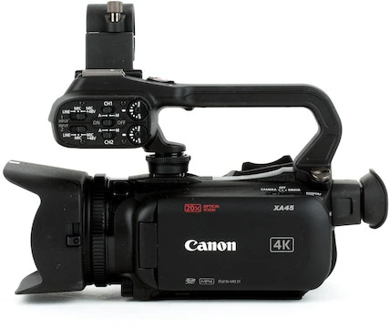 Compact & Easy to Use. The Canon XA camcorders are a fantastic option for first time videography or situations requiring a compact, no fuss camcorder. Despite its small stature, the XA45 features both SDI and mini HDMI outputs for external monitoring and a top handle with professional audio inputs.
