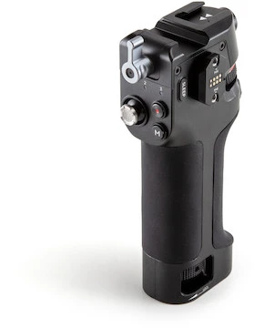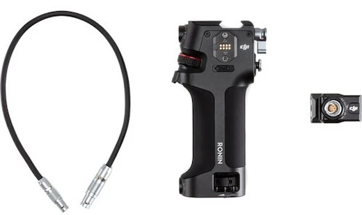 The DJI Ronin Tethered Control Handle is an add-on accessory for the and gimbal stabilizers that offers tethered, off-gimbal control from about 1 foot when using accessory arms and gimbal attachments like the . The grip features one RSA port and one cold shoe for accessories.