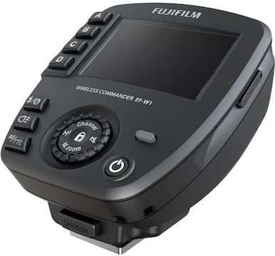 Remote Flash Commander. You can use the Fuji EF-W1 Wireless Commander to remotely control multiple using 2409-2476 MHz radio transmission. It provides eight channels and four groups for creating, wirelessly adjusting, and triggering multi-flash setups.
