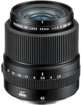 The Fuji GF 45mm f/2.8 R WR is a versatile wide-angle prime for Fuji G-mount cameras. Key features include:
