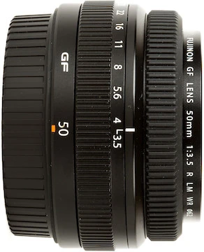 Manual Controls. Like many other GF lenses, the GF50mm f/3.5 features a manual aperture ring with a C (Command) position to allow aperture adjustment via command dial. This lens also offers full-time manual focusing for minute adjustments.