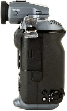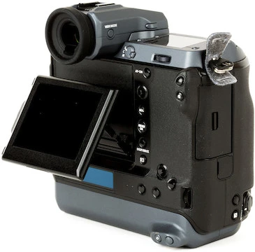 EVF and Tilting Touchscreen LCD. The removable 5.76m-dot OLED electronic viewfinder features 0.85x magnification while offering 100% coverage. It connects to the camera via hot shoe and includes its own hot shoe so you can use compatible external flashes. You also get a tilting 3.2-inch, 2.36M-dot rear touchscreen LCD for navigating menus, controlling image playback, shooting in live view, and selecting focus area.