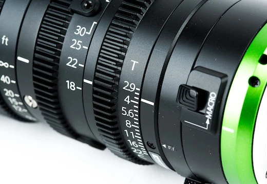 Cine Style. The MK18-55mm is truly a cinema lens with a full cinema feature set. The focus, iris, and zoom rings all have industry-standard 0.8 gears. The focus ring gives you precise control over pulls and follows with 200° of rotation, while the iris ring is de-clicked with a smooth action allowing you adjust exposure mid-shot. This lens has a short flange focal distance, but it allows flange focal distance adjustment so you can fine tune it to the camera youāre using. It offers a macro-focus mode that shortens the minimum focusing distance from roughly four feet to just under three feet. Fujinon MK18-55, Fujinon MK 18-55, Fujinon MK18-55mm, Fujinon MK 18-55mm