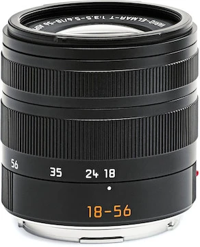 Normal-Range Zoom. Providing a 27-84mm focal length after sensor crop, the Leica 18-56mm f/3.5-5.6 ASPH Vario-Elmar-TL is a wide to short tele zoom that’s great as an all-around, general purpose lens. Its f/3.5-5.6 variable aperture doesn’t give much flexibility in low light, so you’ll want to stick with decent lighting conditions with this one. As mentioned above, the lens does have autofocus capability with manual override when it’s needed.