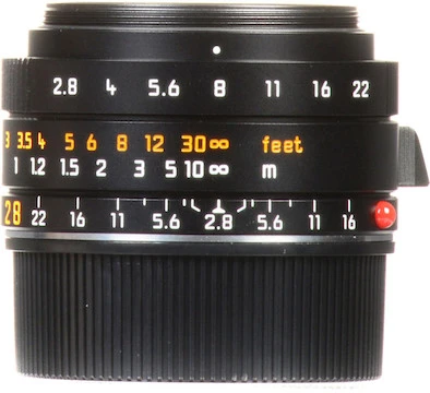 Optics. The 28mm f/2.8 Elmarit-M’s aspherical element minimizes aberrations and distortion at any focus distance. Its eight elements in six groups ensure accurate color reproduction and high-contrast images with great control over lens flare and ghosting. This lens’s ten-blade iris will help keep your bokeh extra smooth.