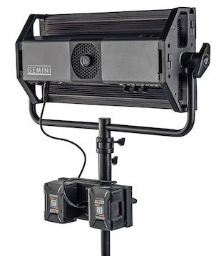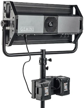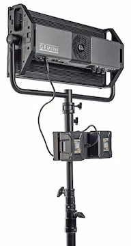 The Litepanels Dual Gold Mount Battery Bracket for Gemini accepts two 14.4V broadcast camera batteries that let the run at 100% power. Key features include: