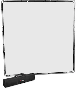 Zero Crease, Easy Setup. The Manfrotto Skylite Rapid Extra Large Kit 10ft x 10ft is a lightweight, but sturdy, 10×10 frame that stretches the fabric tightly to eliminate creasing in your background, and accepts the included 1.25 stop diffuser. This kit uses quick change fabrics that simply clip into a small gap between the frame and border, and serves as a vent for stability in windy locations. The translucent fabric can be used as an overhead scrim to tame harsh sunlight or as a diffuser for a large light source, like a Fresnel.