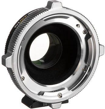 Wider Focal Length and Increased Aperture. This BMPCC 4K version of the Speed Booster CINE T ULTRA widens the mounted lens’s focal length by 0.71x, effectively reducing the overall sensor crop factor from 2.02x to 1.43×. Additionally, the adapter increases the maximum aperture of the mounted lens by 1 stop, with a maximum output aperture of f/0.9.