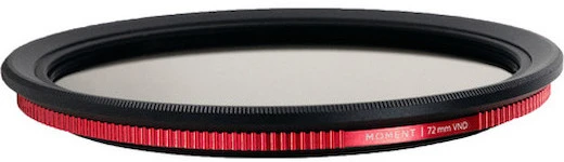 Versatile ND Filter. The Moment 72mm Variable ND Filter (2-5 Stop) mounts to lenses with 72mm front filter threads and lets you easily reduce exposure from 2 to 5 stops by simply rotating its outer ring. Its 0.6 to 1.5 density darkens the entire image, making it perfect for times when you aren’t sure how bright the light may be. It’s particularly useful for shooting snow, white beaches, waterfalls—any situation in which you may want a longer exposure, and it definitely beats carrying around a whole mess of individual ND filters.