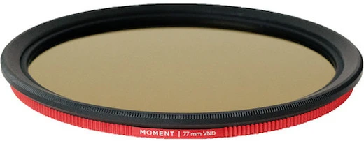 Versatile ND Filter. The Moment 77mm Variable ND Filter (6-9 Stop) mounts to lenses with 77mm front filter threads and lets you easily reduce exposure from 6 to 9 stops by simply rotating its outer ring. Its 1.8-2.7 density darkens the entire image, making it perfect for shooting in very bright light. It’s particularly useful for shooting bright snowy days, sunny beach scenes, desert conditions—any situation in which you may want a longer exposure, and it definitely beats carrying around a whole mess of individual ND filters.