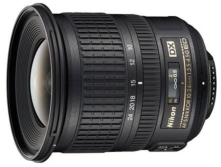 Very Wide Angle of View. At 10mm, the Nikon 10-24mm f/3.5-4.5G DX offers an extremely wide 110° angle of view.