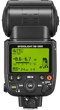 Output. The SB-5000 offers a zoom range of 24-200mm (full-frame equivalent), a retractable 14mm wide panel, and flash output of GN: 113’ @ ISO 100/35mm. Slow, high-speed, 1st, and 2nd curtain options are all available in full sync mode, while a speedy recycle time of 1.8-2.6 seconds is possible using .