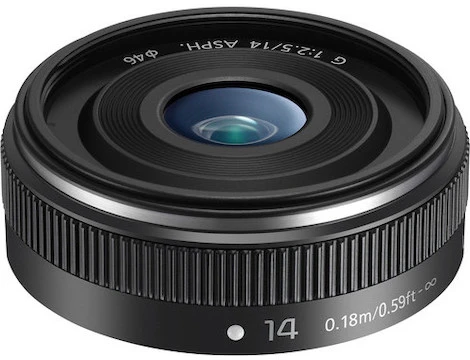 The Panasonic 14mm f/2.5 ASPH II is a wide angle pancake prime lens for Micro 4/3 cameras and camcorders. Key features include: