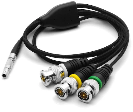 The RED 3BNC-to-00 LEMO Camera Sync Cable is an accessory for RED cameras that provides start/stop, timecode, and genlock support via the camera’s SYNC port: