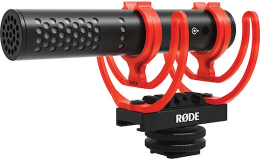 Redesigned Shockmount. While most shockmounts utilize rubber bands, the GO II features a rugged Rycote Lyre suspension-style shockmount, intended to reduce vibrations just as well while being more durable. A sliding rail system allows you to move the microphone forward or backward, and the included foam windscreen helps further reduce unwanted environmental noise. The VideoMic GO II works with RODE apps and is MFi-Certified for Apple iOS mobile devices.