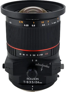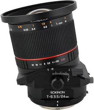 The Rokinon 24mm f/3.5 Tilt-Shift for Canon is a specialty manual-focus lens for Canon EF-mount cameras. Key features include: