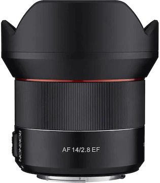 The Rokinon AF 14mm f/2.8 for Canon is an ultra-wide angle lens designed for Canon EF-Mount cameras and camcorders. Key features include:
