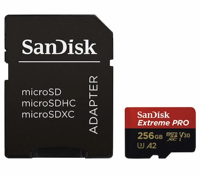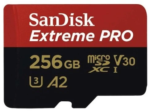 The SanDisk UHS-1 microSDXC 256GB Extreme Pro U3 A2 II is an ultra-fast memory card that holds up to roughly 3,410 minutes of footage. Key features include: