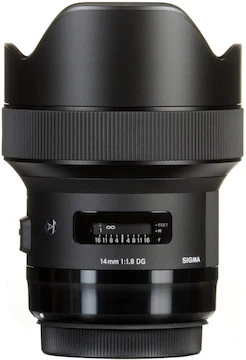 Fast f/1.8 Aperture Wide Angle. The Sigma 14mm f/1.8 DG HSM Art for L-mount’s bright f/1.8 maximum aperture, wide-angle perspective, and fast, flexible performance make it excellent for low-light outdoor shooting and astrophotography. You can also use this lens on APS-C mount cameras, on which it’ll provide a 21mm equivalent focal length.