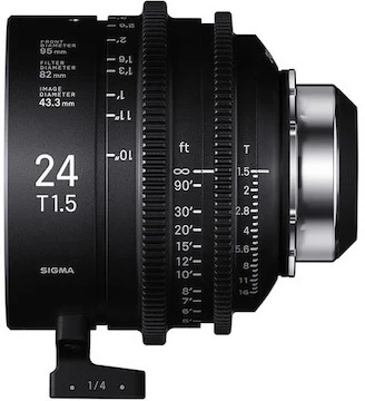Wide-Angle Prime. The Sigma Cine 24mm T1.5 offers full-frame coverage, giving you a compact, lightweight, wide-angle cine lens. Itās capable of delivering 6K to 8K resolution, and its fast T1.5 aperture allows depth-of-field control and low-light shooting flexibility.