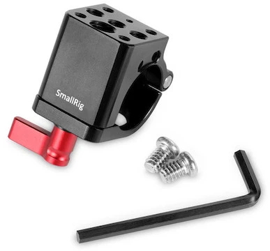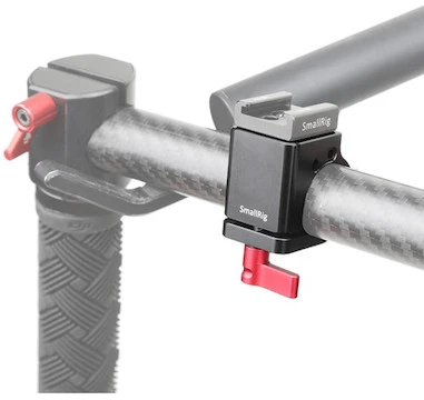 The SmallRig 1860 25mm Rod Clamp for Gimbal Stabilizers lets you mount additional accessories on and stabilizers, in addition to any other items with 25mm or 1.0-inch rods. Specifically, you can use it to mount your V-Mount battery on top of your Ronin to power all of your accessories to minimize camera weight on the gimbal.