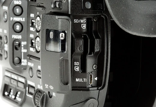 Dual SDXC Card Slots. The Sony FS5 uses industry-standard SDXC media and offers a variety of recording options for file spanning and redundancy, as well as the ability to record proxy files with the same name and timecode as the main recordings.