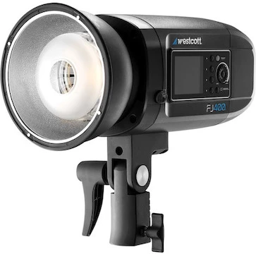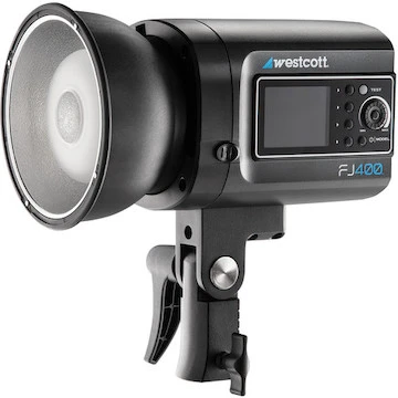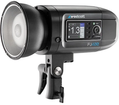 Versatility. The Westcott FJ400 400Ws Strobe’s nine-stop power range, High-Speed Sync, Rear-Curtain Sync, and TTL capabilities mean you can use it in a broad range of shooting situations. It boasts a 0.05- to 0.9-second recycle time, which is lightning fast for a battery-powered flash. A 20 W LED modeling light keeps power drain to a minimum.