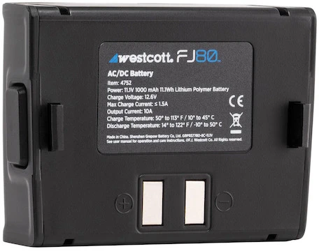 The Westcott FJ80 Battery for the Westcott FJ80 Speedlight provides about 400 full-power flashes per charge with no performance fade, or up to thousands of flashes when you lower the light’s power output.