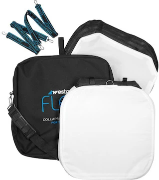 Versatility. The Westcott Flex China Cube for Flex 1×1 LED Mat uses 1-¼ stop white diffusion material to expand the coverage of your to 360 degrees. It produces a soft light that’s excellent for overhead use on a boom or grid, for roundtable discussions, or as a hair light. It includes four removable black flags that function like a barn door’s leaves, letting you limit illumination in specific areas.